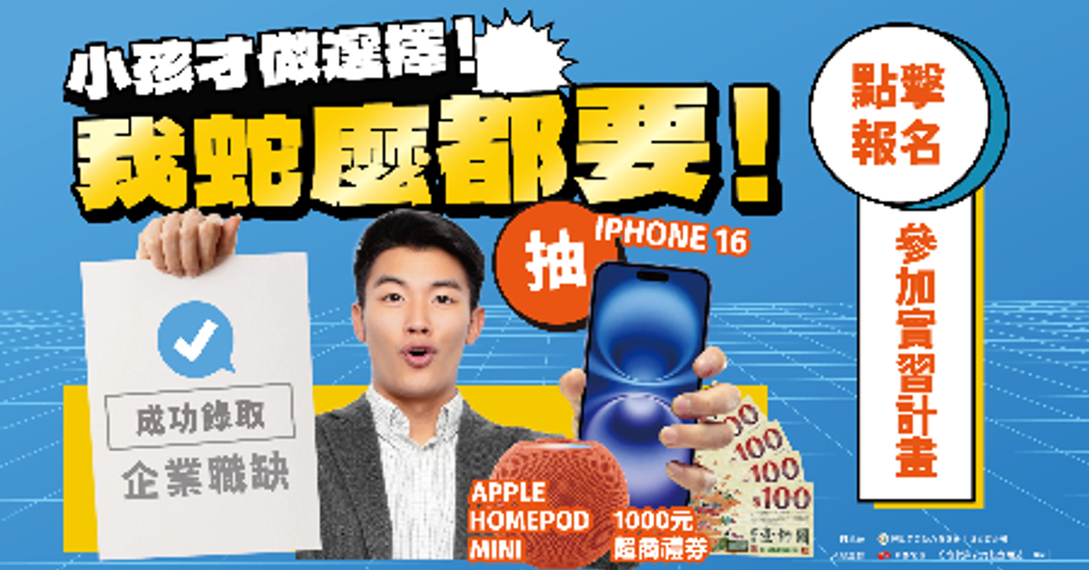 親愛的同學們,大家好! 賈桃樂青年企業實習計畫準備了一系列企業實習服務,協助大家在職涯規劃上更有方向, 讓我們一起來看看有哪些服務能幫助你順利邁向實習的第一步吧! 參與本項計畫,除了獲得以下免費職涯探索資源外,更有抽好禮大獎的機會。 本單位保留隨時修正、暫停或終止本活動之權利,如有變動恕不另行通知。親愛的同學們,大家好! 賈桃樂青年企業實習計畫準備了一系列企業實習服務,協助大家在職涯規劃上更有方向, 讓我們一起來看看有哪些服務能幫助你順利邁向實習的第一步吧! 參與本項計畫,除了獲得以下免費職涯探索資源外,更有抽好禮大獎的機會。 本單位保留隨時修正、暫停或終止本活動之權利,如有變動恕不另行通知。親愛的同學們,大家好! 賈桃樂青年企業實習計畫準備了一系列企業實習服務,協助大家在職涯規劃上更有方向, 讓我們一起來看看有哪些服務能幫助你順利邁向實習的第一步吧! 參與本項計畫,除了獲得以下免費職涯探索資源外,更有抽好禮大獎的機會。 本單位保留隨時修正、暫停或終止本活動之權利,如有變動恕不另行通知。